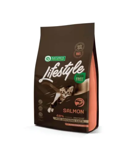 Nature’s Protection Lifestile bez žitarica sa lososom za mačiće je super premium, potpuna i izbalansirana suva hrana za mačke sa najkvalitetnijim izvorom proteina i sirovinama. Ova potpuna suva hrana za mačke je specijalno dizajnirana za mačiće kako bi im pomogla da prebrode težak period odbijanja u optimalnom stanju, obezbeđujući dobar početak života. Dopunjen je inovativnim sastojcima koji ne sadrže gluten i pružaju savršene performanse za dobrobit kućnog ljubimca. Kompletan sastav ove suve hrane za mačke nije pogodan samo za mačiće koji rastu, već i za trudne mačke i mačke koje doje, obezbeđujući potrebnu energiju za rast i održavanje zdravlja.
