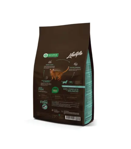 Nature’s Protection Lifestile bez žitarica sa bijelom ribom za odrasle mačke je super premium, potpuna i izbalansirana suva hrana za mačke sa najkvalitetnijim izvorom proteina i sirovinama. Ova kompletna suva hrana za mačke je specijalno dizajnirana za odrasle mačke kako bi se obezbedio nesmetan sistem za varenje. Obogaćen je inovativnim sastojcima koji ne sadrže gluten i pružaju savršene performanse za dobrobit kućnog ljubimca. Kompletan sastav ove suve hrane za mačke ne samo da će vašem ljubimcu obezbediti sve efikasne hranljive materije, već će obezbediti i savršenu svarljivost, čvrstu stolicu i sjajnu dlaku.
