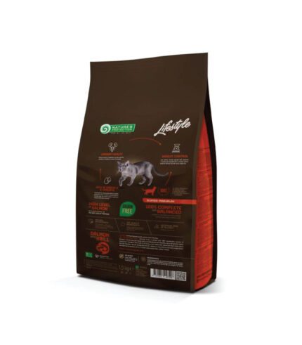 suva hrana bez žitarica za odrasle mačke nakon sterilizacije sa lososom i krilom Nature’s Protection Lifestile bez žitarica sa lososom i krilom za sterilizovane odrasle mačke je super premium, kompletna i izbalansirana suva hrana za mačke sa najkvalitetnijim izvorom proteina i sirovinama. Ova potpuna suva hrana za mačke je specijalno dizajnirana za odrasle mačke kako bi pomogla u oporavku nakon sterilizacije. Ima manje kalorija i dopunjen je inovativnim sastojcima koji pomažu u održavanju optimalne težine i smanjenju viška težine. Kompletan sastav ove suve hrane za mačke ne samo da će vašem ljubimcu obezbediti sve efikasne hranljive materije, već će obezbediti i savršenu svarljivost i zdrav urinarni sistem.
