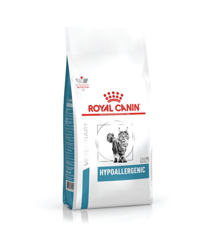 ROYAL CANIN® HYPOALLERGENIC  je kompletna dijetetska hrana za mačke formulisana da smanji netoleranciju na sastojke i hranljive materije. Odabrani izvori proteina i ugljenih hidrata. PREPORUKE: Preporučuje se da se pre upotrebe zatraži mišljenje veterinara. Hraniti ovom hrano 3 do 8 nedelja. Ako znaci netolerancije i dalje postoje, ova dijeta se može koristiti neograničeno.