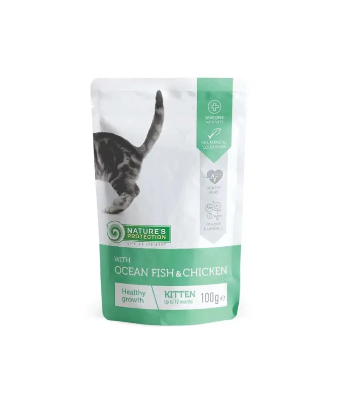 Nature's Protection Healthi Grovth je Super Premium vlažna hrana za mačiće sa okeanskom ribom i piletinom, u ukusnom sosu i dopunjena mineralima. Sastav ove vlažne hrane za mačke obogaćen je sastojcima koji su savršeni za obezbeđivanje potrebne količine kalorija, vitamina i minerala za razvoj i energiju mačića. Idealan je dodatak ishrani suve hrane Nature's Protection. Nature’s Protection vlažna hrana je dizajnirana da zadovolji različite potrebe mladih i odraslih mačaka. Glavni izvor proteina u ovoj hrani je riba i meso visoke nutritivne vrednosti.