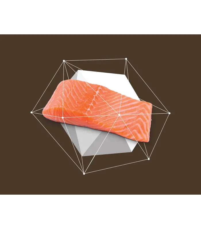 Sastav: losos 42% (sušen i fino mleven), krompir pahuljice, slatki krompir, grašak, mast živine, pulpa šećerne repe, lososovo ulje, dikalcijum fosfat, kokosovo ulje (1%), dinamički mikronizovani klinoptilolit (1%), tapioka, laneno seme, fruktooligosaharidi (FOS), ekstrakt juke, zeleni čaj, suve brusnice, žuta nevena (izvor luteina).
